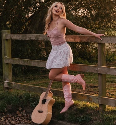 Stella Lain - the country barbie, is a singer/songwriter with a big voice and even bigger dreams from Norfolk UK. She is a self-taught guitarist and award-winning songwriter since the age of 10/11 years old. Her music blends heartfelt stories with catchy charm. Now finally working on her debut EP, she’s ready to share her pink and rhinestone, butterfly-filled world—one song at a time.