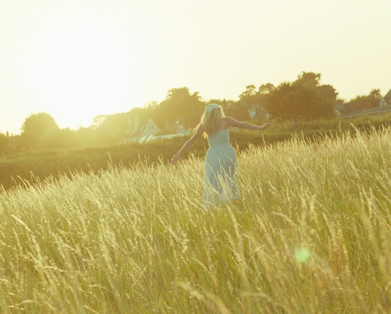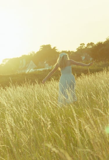 After filming a lot of running on the beach and dunes, we made our way to a near by meadow for even more frolicking as the sun was starting to set. it was the perfect golden hour vibes!